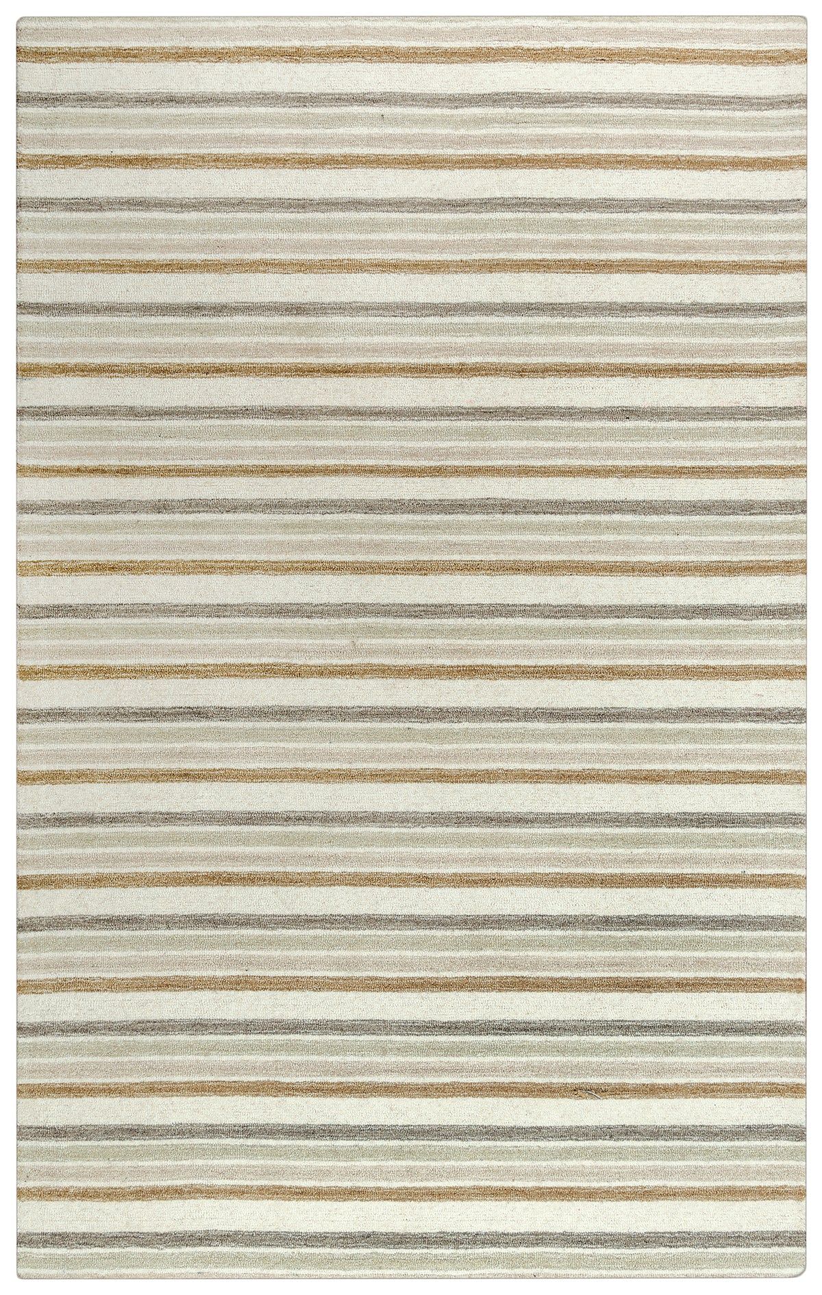 Embrace the striped design of the Tetra collection from Rizzy Home. Made with a 100% wool and a warm color palette featuring shades of beige, orange, and gray, this rug is both stylish and comfortable to walk on.