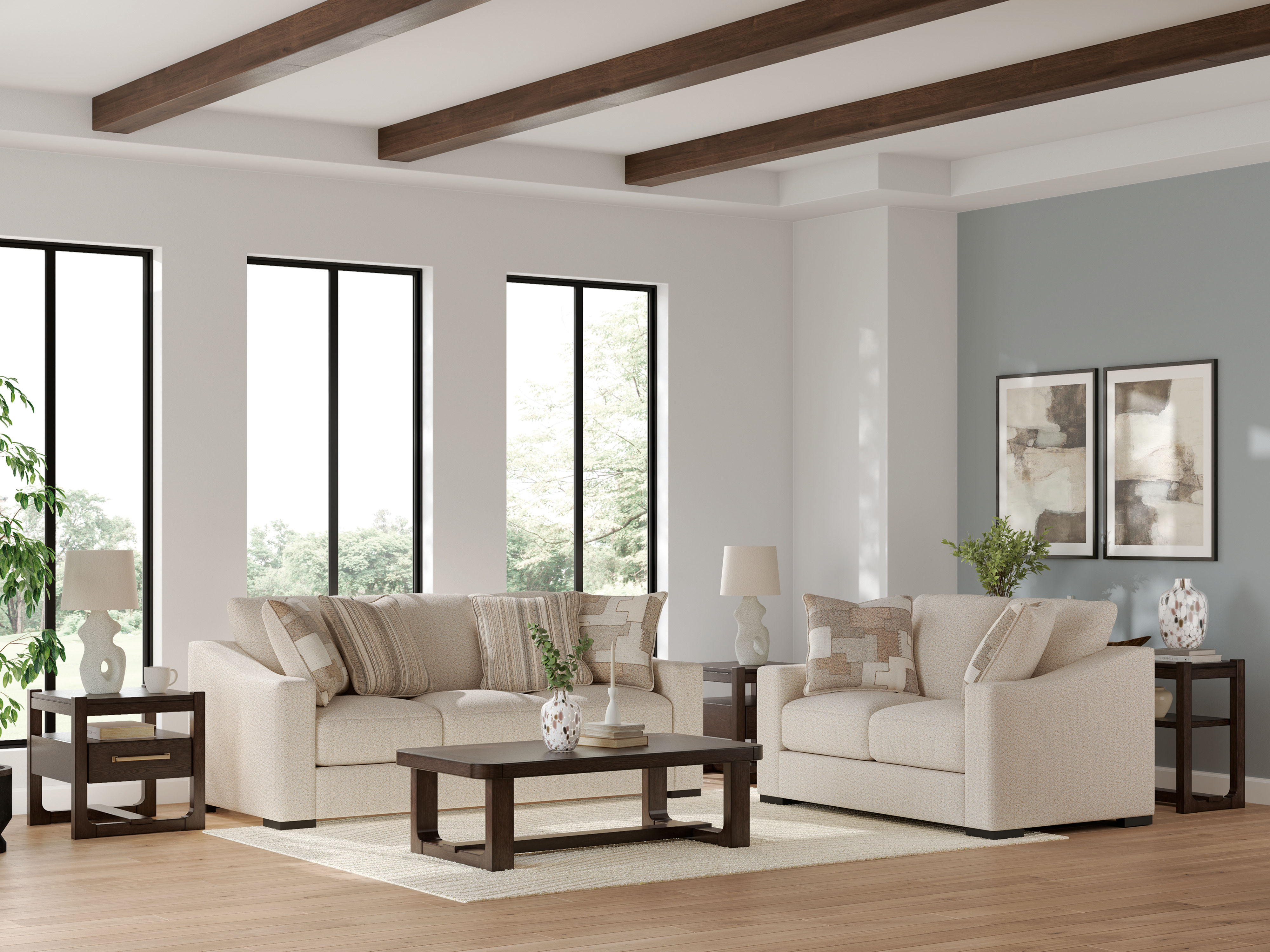 Strike the perfect balance of comfort and style. With this loveseat, living room lounging gets a contemporary chic upgrade. Its sleek slope arms and soft neutral upholstery are so easy on the eyes. And when you’re sucked into your favorite book or streaming show, ultra-plush feather blend cushions keep you comfy as you relax.