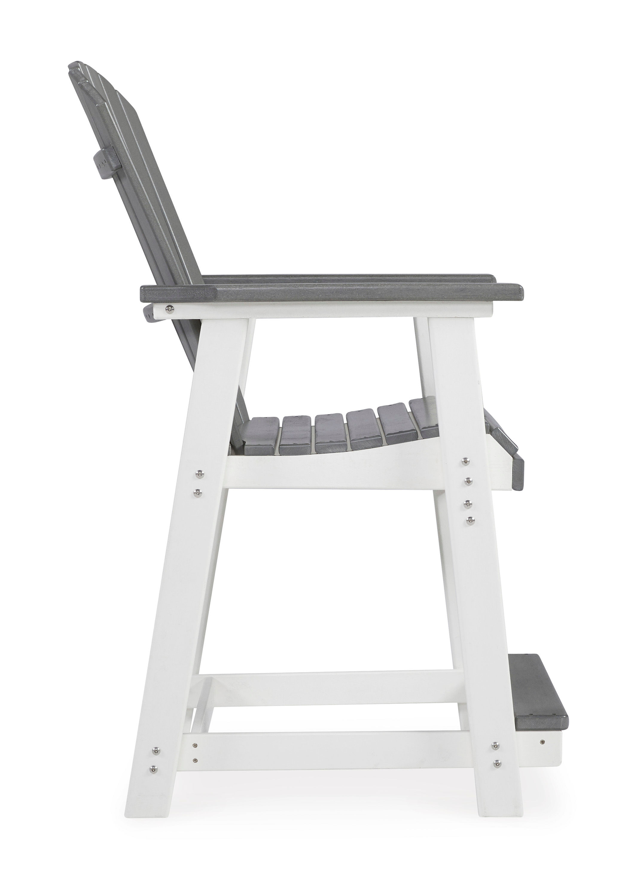 Raise the bar on outdoor living with the Transville bar stool. Crafted for style, comfort and MEGA TUFF™ durability, the counter height stool caters with a standout two-tone look that pairs gorgeous gray and crisp white for twice the interest.
