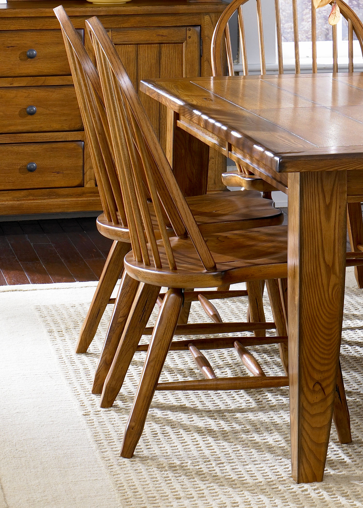 Sit in style with the Treasures bow back side chair. Crafted of rubberwood solids, this piece features a rustic oak finish, nylon chair glides to protect your flooring, and saddle shaped seating for added comfort. This chair is available in an alternative finish. Treasures offers simple shaker styled dining in a subtle finish which evokes the feel of a treasured antique.