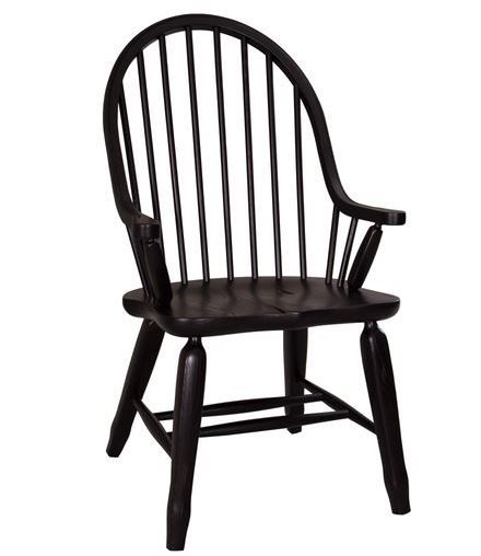 Sit in style with the Treasures bow back arm chair. Crafted of rubberwood solids, this piece features a rustic black finish, nylon chair glides to protect your flooring, and saddle shaped seating for added comfort. This chair is available in an alternative finish. Treasures offers simple shaker styled dining in a subtle finish which evokes the feel of a treasured antique.