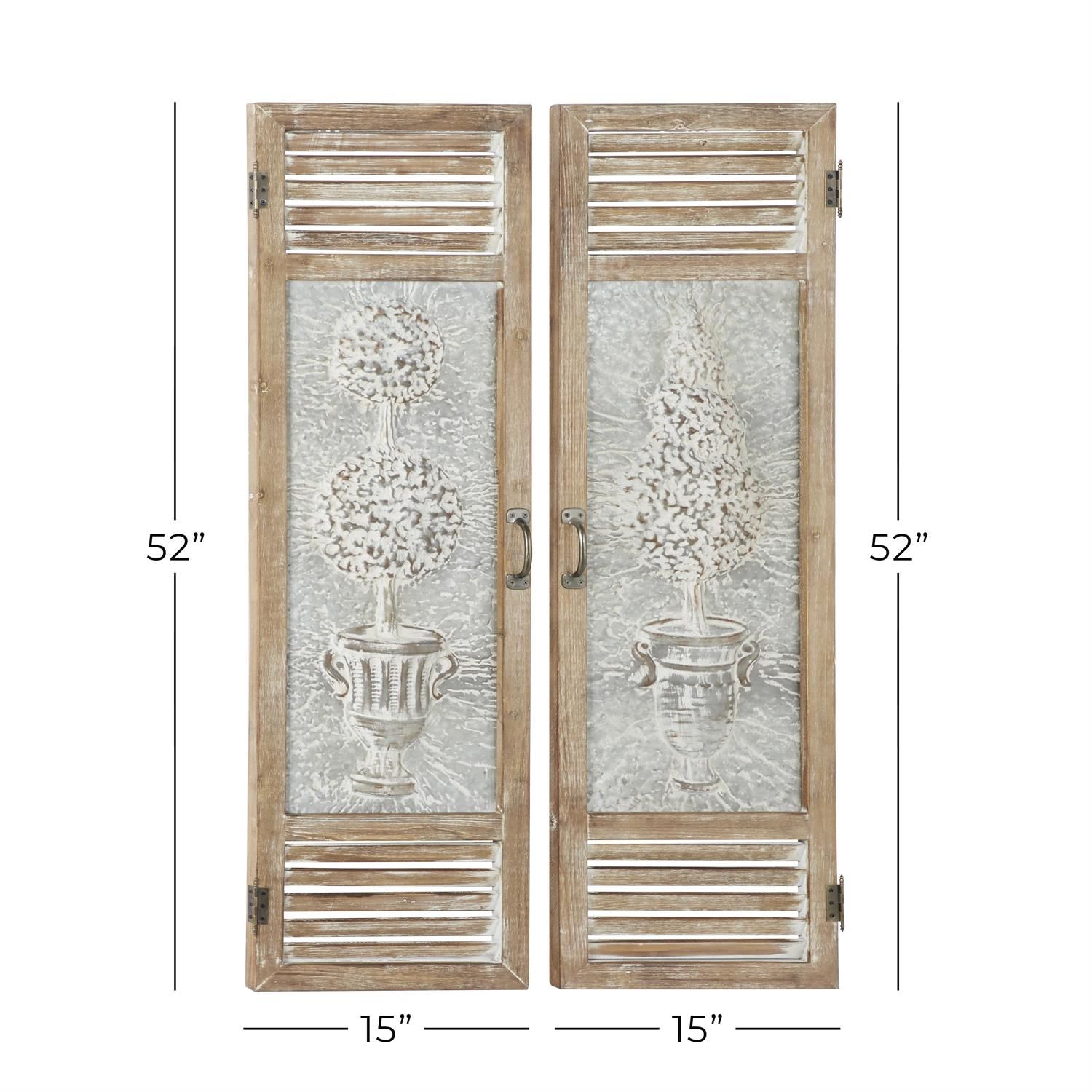 Infuse your home with cozy charm, where weathered textures, rustic finishes, and warm earthy tones create a wholesome atmosphere. This brown home wall decor set is crafted from sturdy fir wood, galvanized metal, and MDF. Rectangle decor set for wall is finished in a distressed galvanized silver metal sheet, complemented by whitewashed brown wood frames. This metal set of 2 wall decors boasts farmhouse style, featuring botanical silhouettes as focal points within swing door style frames.