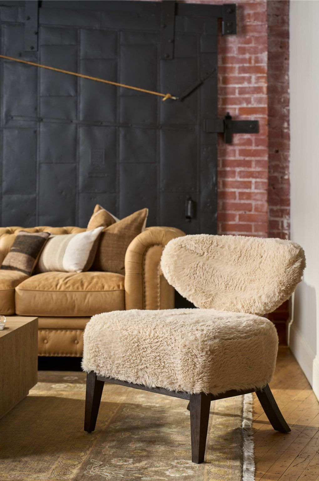 The Tremont accent chair is a striking blend of modern comfort and retro charm, featuring a cozy, teddy bear-like upholstery in a sand hue. Its generously padded seat and curved backrest offer inviting support, making it a perfect spot to relax. The textured, shearling-style fabric adds a layer of warmth, while the deep, angled wooden legs provide sturdy support and a mid-century modern flair.