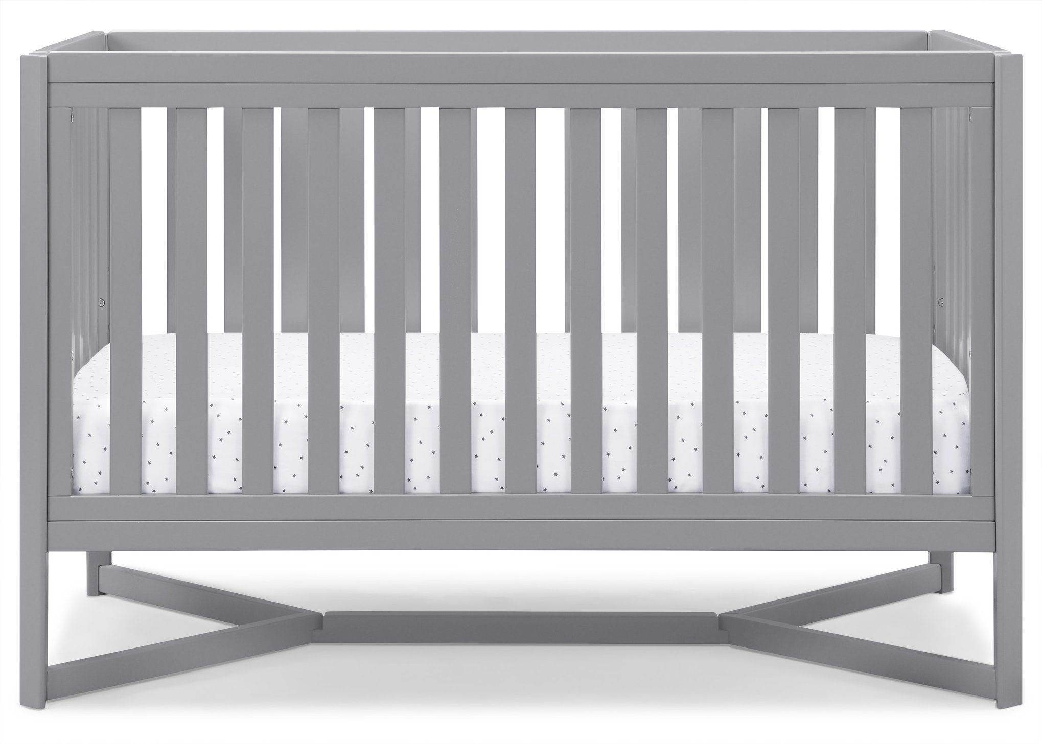 Designed to be the centerpiece of your nursery, the Tribeca 4-in-1 Convertible Crib by Delta Children exudes contemporary cool. Featuring plenty of modern touches it boasts a sleek x-shaped base and airy slats. Crafted from strong and sturdy wood, this crib features three height levels, and converts to a toddler bed, daybed and full size bed, making it the only bed your baby will every need. Toddler Guardrail #0080, Full Size Wood Bed Rails #0050 or Full Size Metal Bed Frame #0040 sold separately.