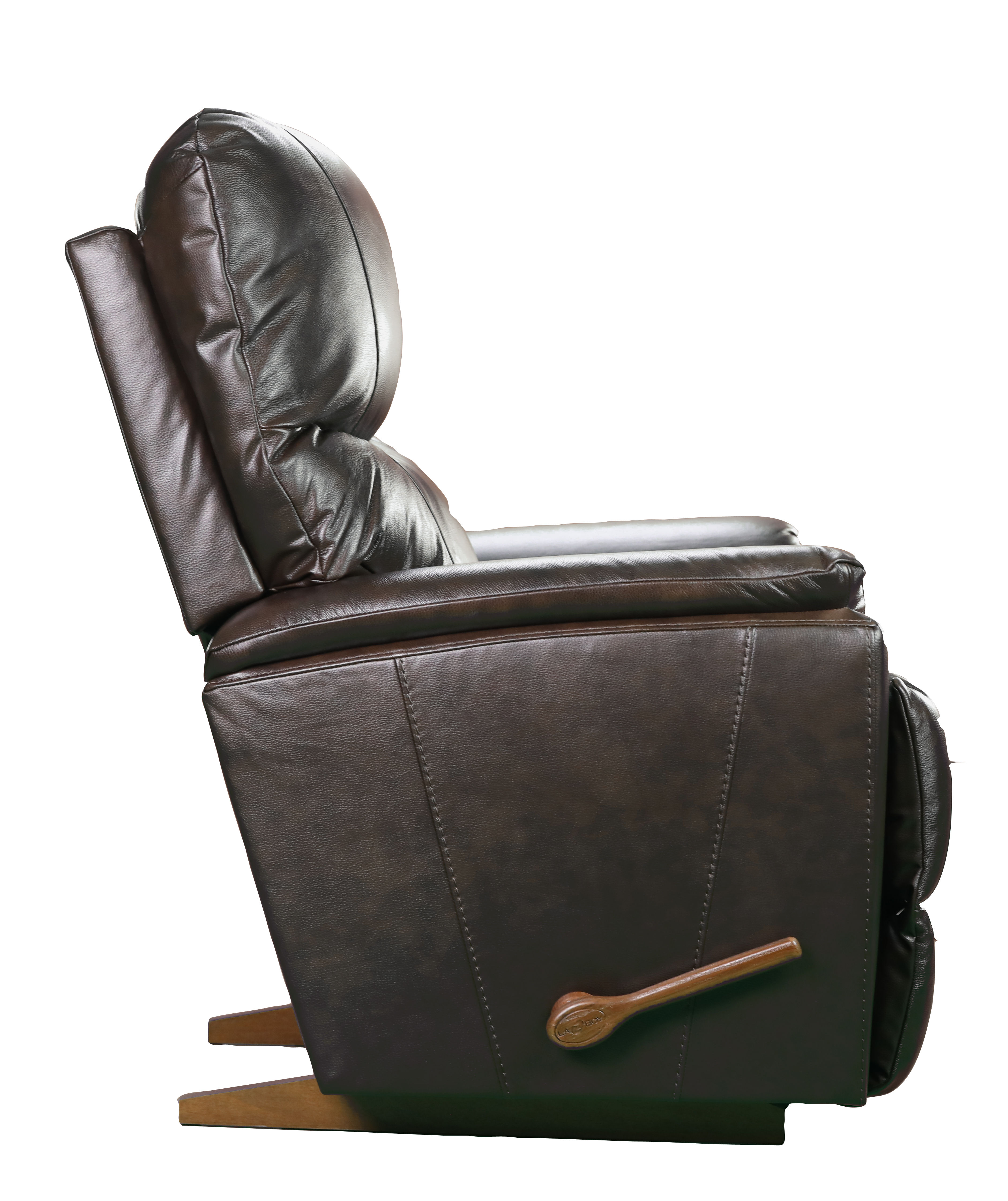 An updated silhouette, complete with slightly flared arms and a sleek tall back give Trouper a look that’s fresh and contemporary. It’s also one comfortable recliner. The sculpted bucket seat cradles you in softness while the padded split back provides superb head and lumbar support. Simply use the convenient handle on the outside arm to raise the legrest for reading, relaxing or watching TV. When you’re not reclining, it’s a relaxing rocker with a smooth, graceful motion.
