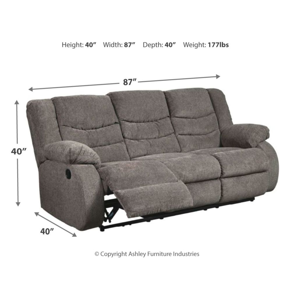 The Tulen reclining sofa puts the win in winning. Its waterfall back design and doubly plump pillow top arms team up with soft chenille fabric to go for the goal. Ample seating room makes the comfort possibilities endless. Sit back and relax. You won’t go wrong with this reclining sofa.
