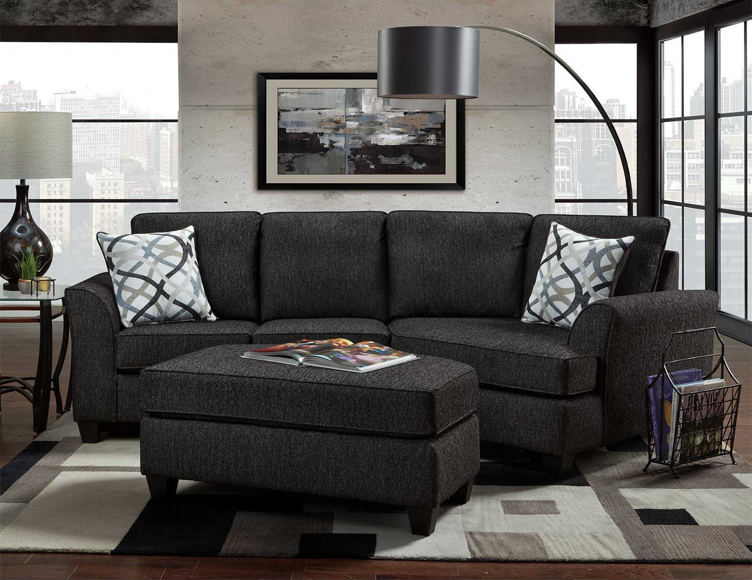 Experience true comfort and style with the Tuxedo sectional with cuddler from Behold Home. This contemporary piece features flared arms and exposed taper legs that add visual interest to your living area. This sectional has deep seating and charcoal fabric upholstery that will allow you to stay comfortable.