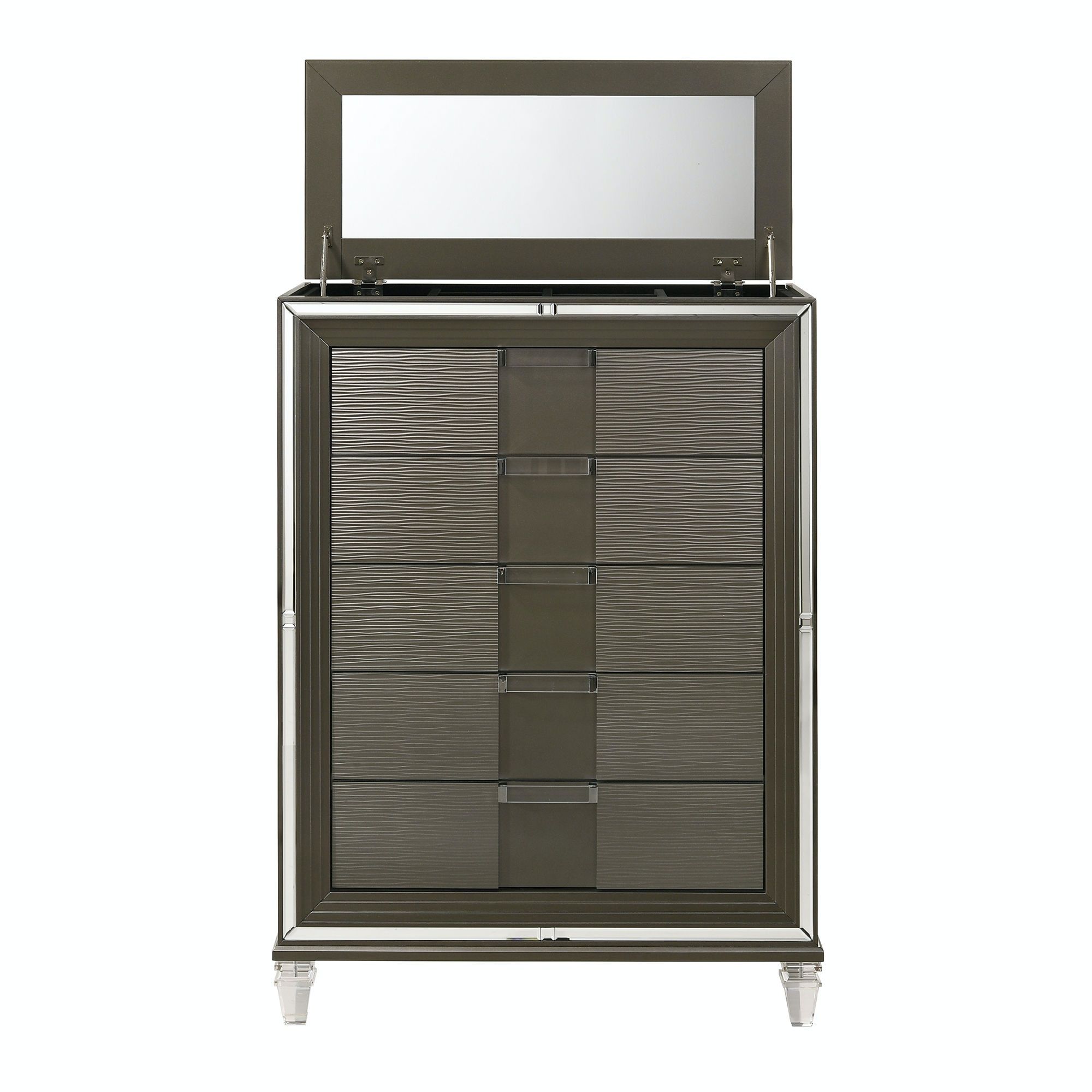 Bring dazzling style while making the most of the space you have in your bedroom with this dresser. The glam accents in this piece add an elegance that few contemporary storage pieces are able to rival. A rich modern design and exquisite details come together to create the ultimate in the grand style of the Twenty Nine chest of drawers.