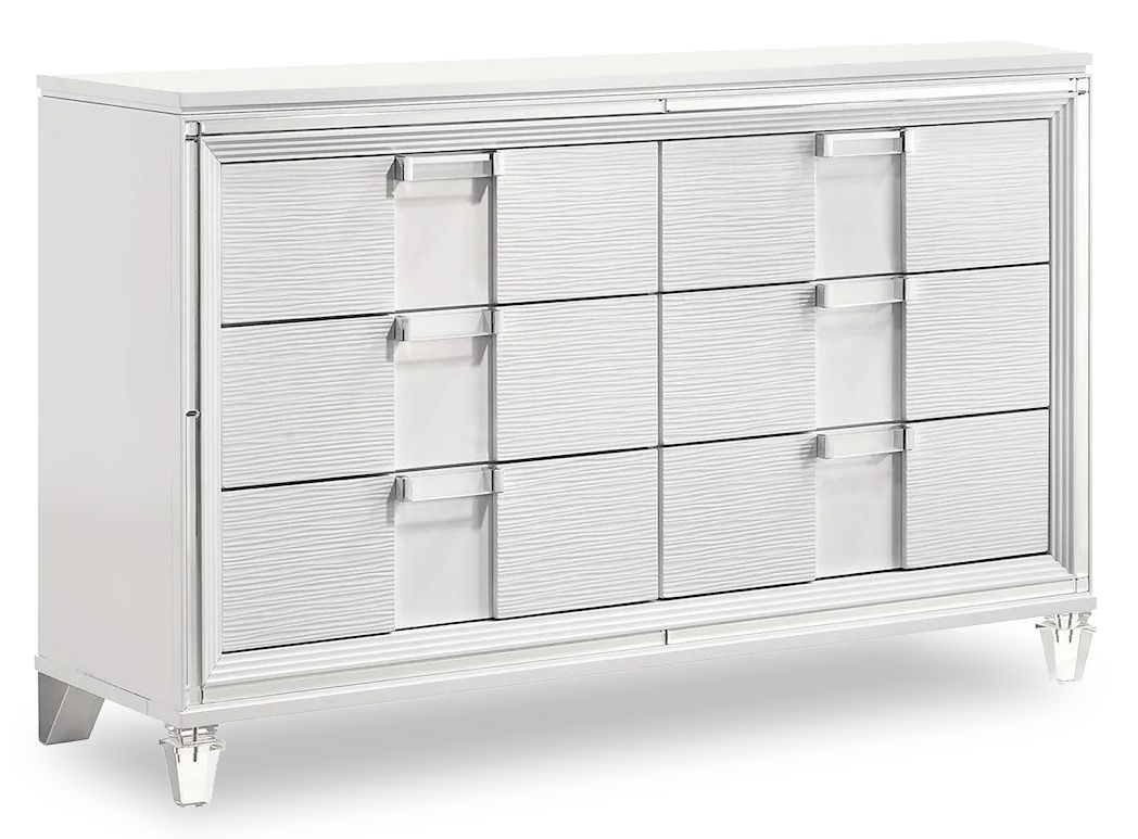 Elevate your bedroom with dazzling glam style and ample storage with the Twenty Nine dresser in a white finish.