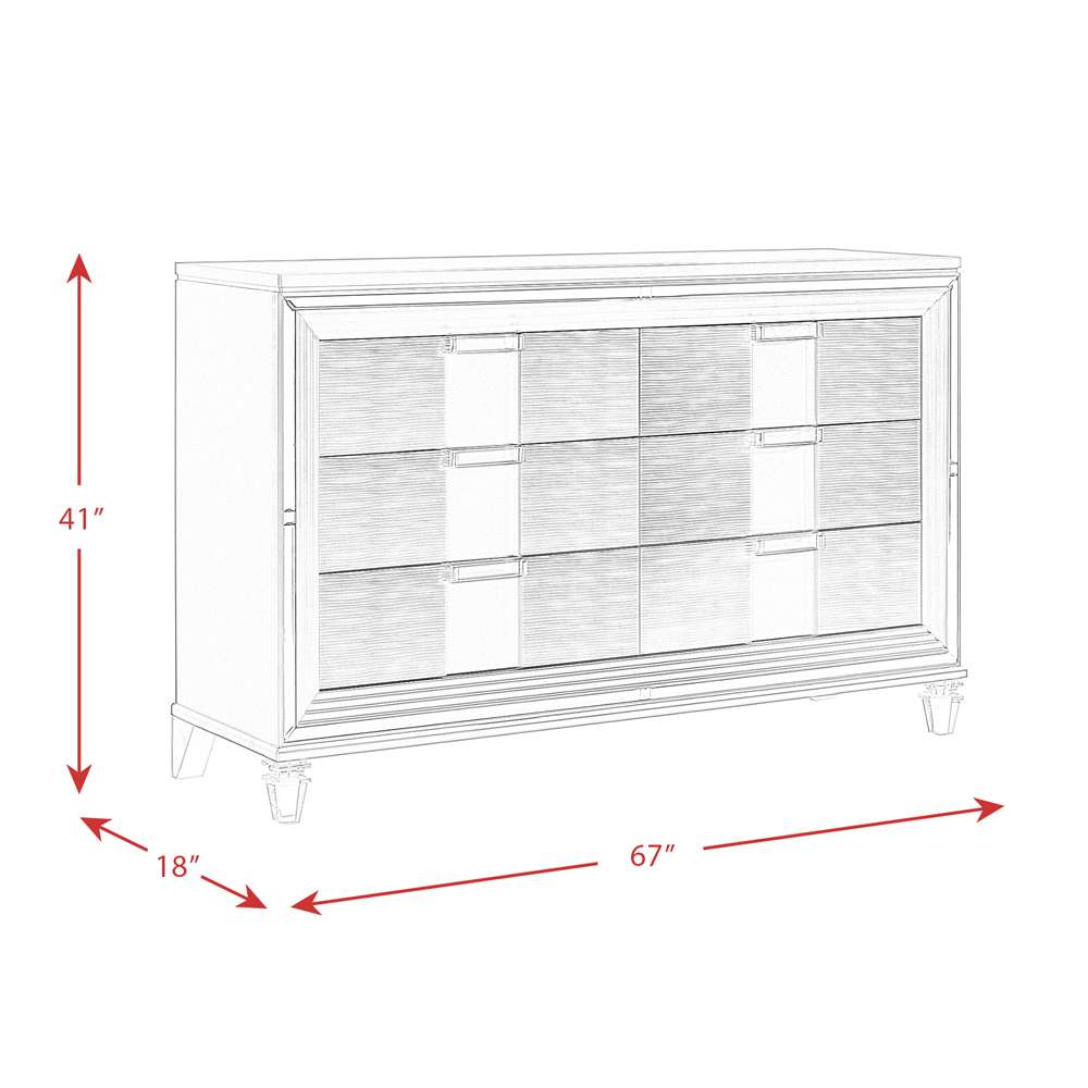 Elevate your bedroom with dazzling glam style and ample storage with the Twenty Nine dresser in a white finish.