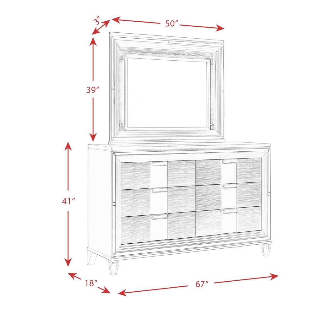 Elevate your bedroom with glam style and ample storage with the Twenty Nine dresser & mirror set in a white finish.