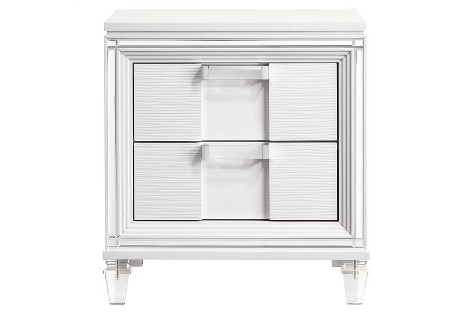Elevate your space with the grand style of the Twenty Nine nightstand in white.