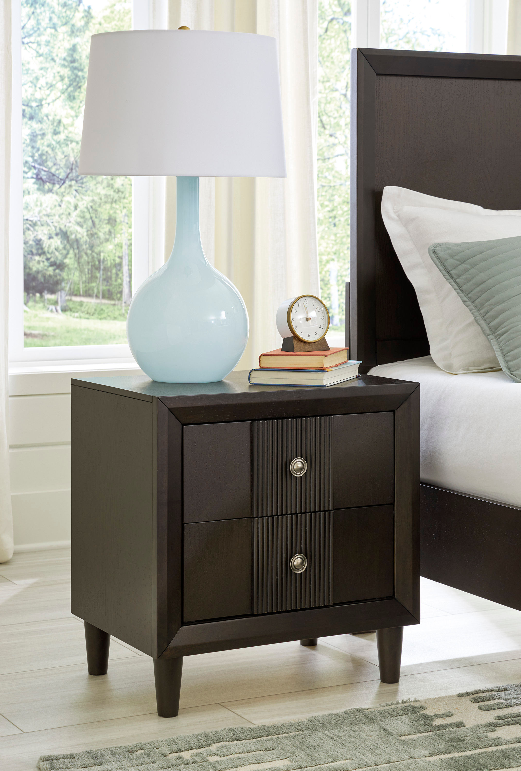 Master the art of metropolitan living. Crafted with posh practicality in mind, the Urbantrack nightstand stores bedside essentials in striking fashion. A chic reeded accent delivers effortless textural interest. Adding this piece to your existing collection? The warm dark brown hue welcomes a variety of style pairings, from casual to urban contemporary.