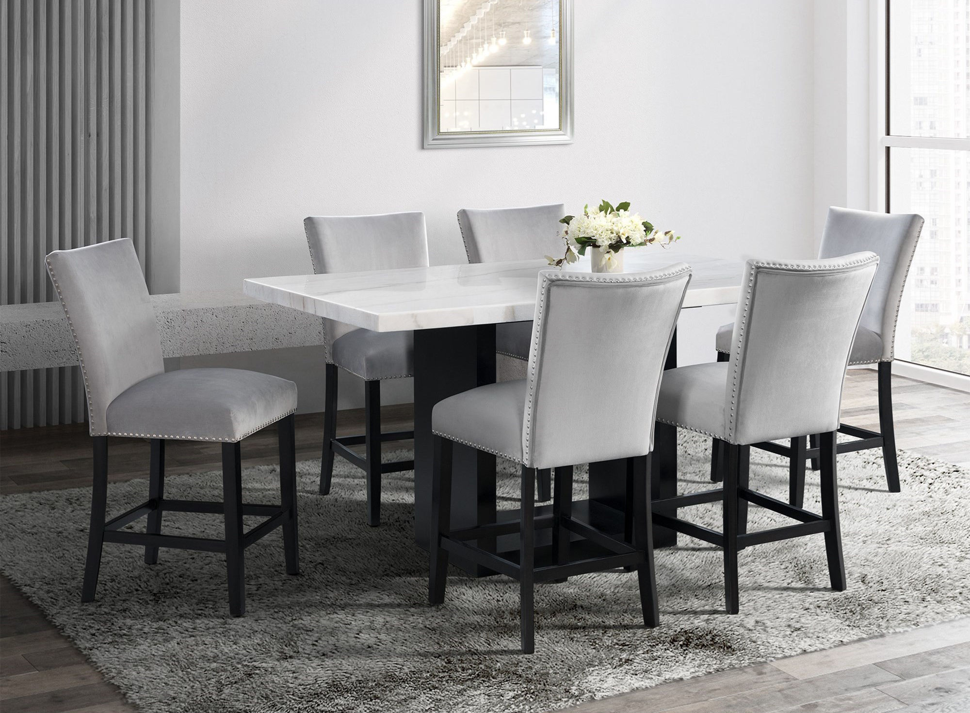 Elevate your contemporary space with the Francesca 7-piece counter height dining room set.