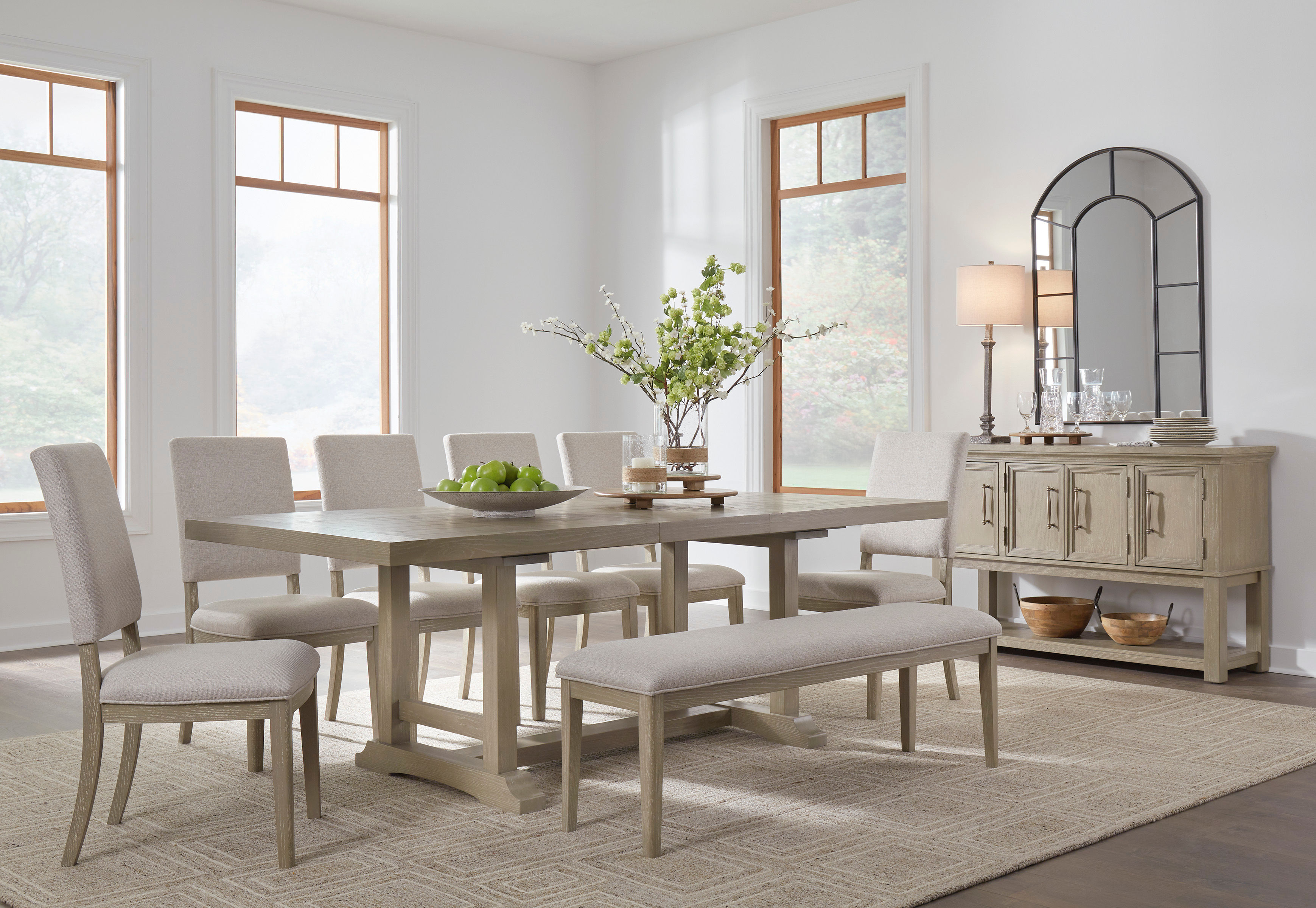 Indulge in relaxed refinement with the Vallardia dining server. Generously scaled moulding details and a light grayish brown finish exemplify an updated take on traditional styling. Thanks to its versatile functionality, this four-door piece effortlessly works as a sideboard, entryway table or TV stand. Now there’s a show of great taste—no matter where you place it.