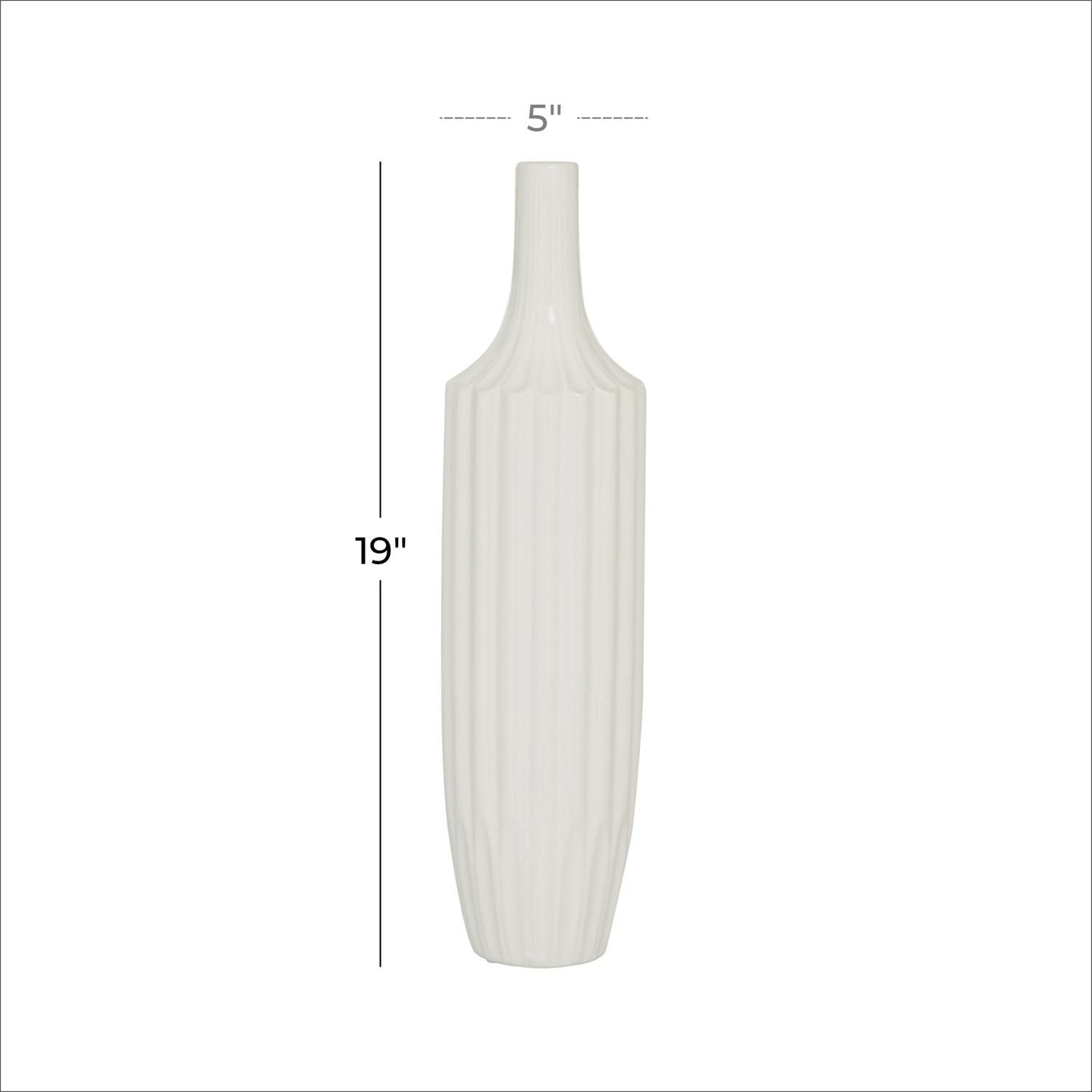 Inspired by sleek elegance and clean lines, a minimalistic design offers effortless luxury with monochromatic tones and bold, angular structures. This white decorative vase is crafted from high-quality ceramic material. The pillar home decor vase boasts a white color with a polished ceramic finish. This stoneware vase features a unique stripe texture design.