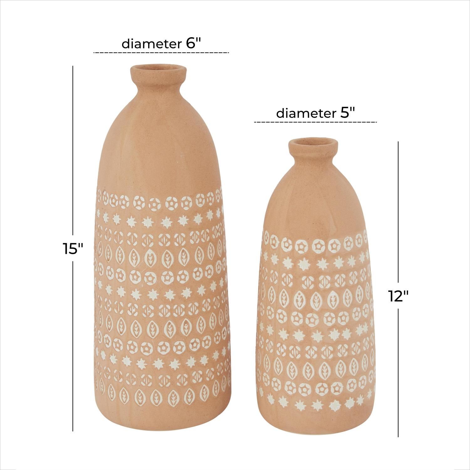 • Each piece in the rustic set of 2 vases for home decor is carefully handcrafted using molded ceramic with painted star patterns