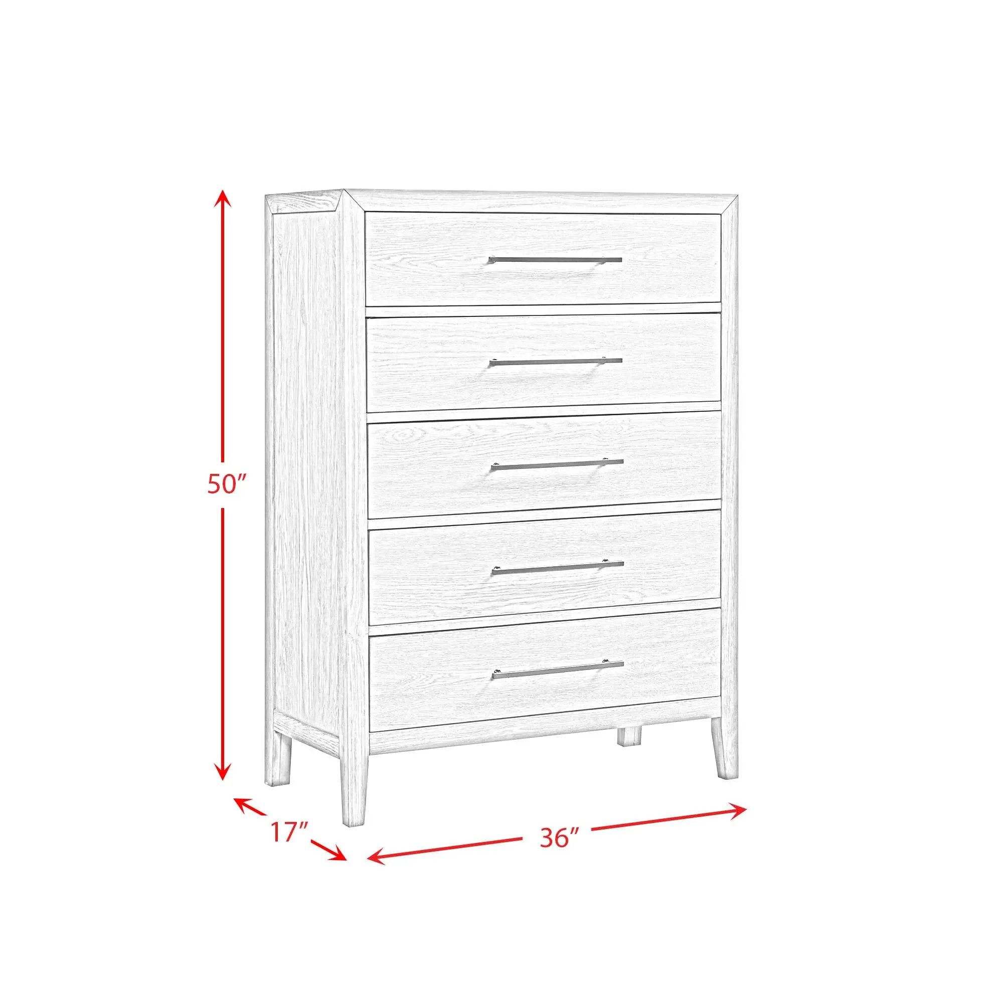 Create a modern and elegant bedroom with our Versailles contemporary black chest of drawers. The sleek black oak finish adds a touch of sophistication to any space, while the black finished metal drawer pulls provides detail. With ample storage space in this piece, you’ll have plenty of room to keep your belongings organized and out of sight. Upgrade your bedroom with this chest and enjoy both style and functionality in one beautiful package.