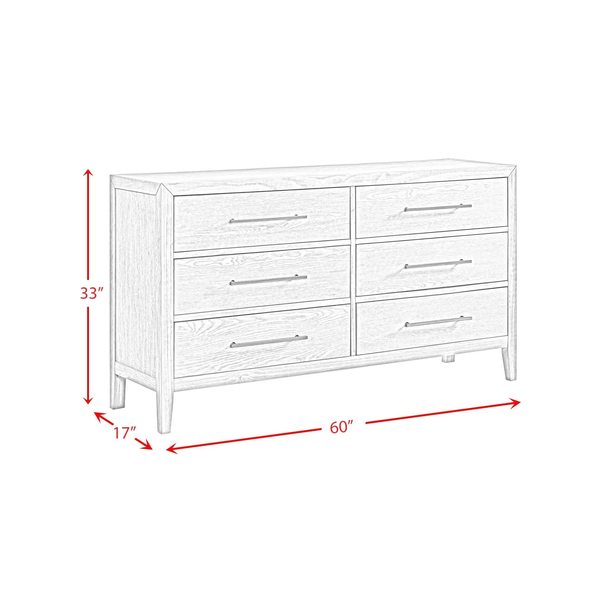 Create a modern and elegant bedroom with our Versailles contemporary black dresser. The sleek grey oak finish adds a touch of sophistication to any space, while the black finished metal drawer pulls provide a contrasting detail. With ample storage space in this piece, you’ll have plenty of room to keep your belongings organized and out of sight. Upgrade your bedroom with this dresser and enjoy both style and functionality in one beautiful package.