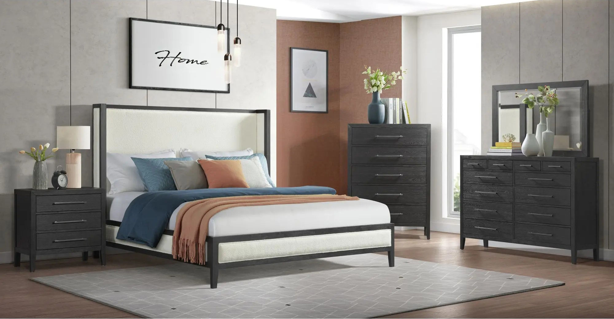 Create a modern and elegant bedroom with our Versailles contemporary black dresser. The sleek black oak finish adds a touch of sophistication to any space, while the black finished metal drawer pulls provide a contrasting detail. With ample storage space in this piece, you’ll have plenty of room to keep your belongings organized and out of sight. Upgrade your bedroom with this dresser and enjoy both style and functionality in one beautiful package.