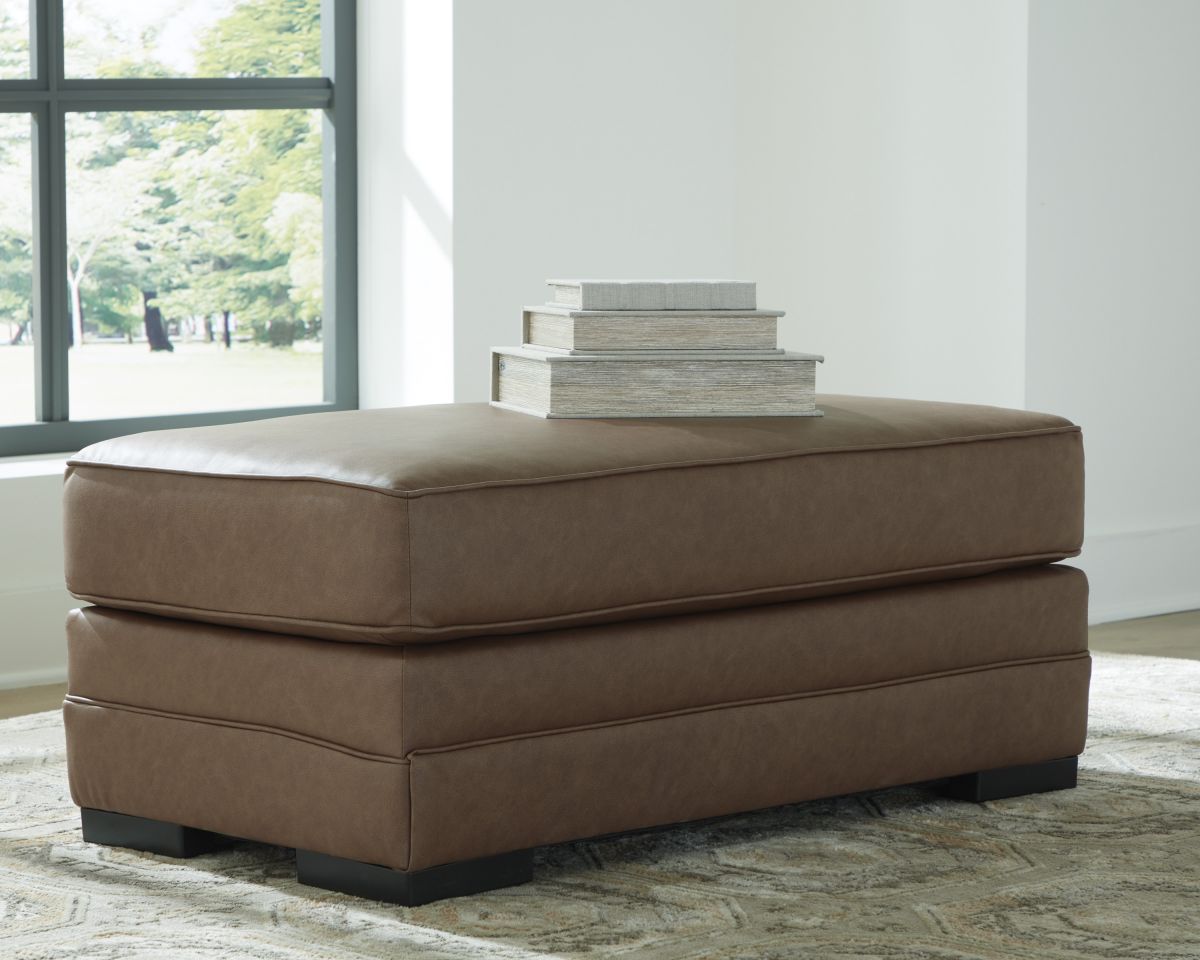 Simple and streamlined, this ottoman delivers a cozy yet contemporary vibe you’ll love as much as we do. Its supple faux leather, in a trend-right caramel tone, invites you to rest your tired feet after a long day. This piece’s understated elegance and enduring comfort are perfect for entertaining or for a relaxing night.