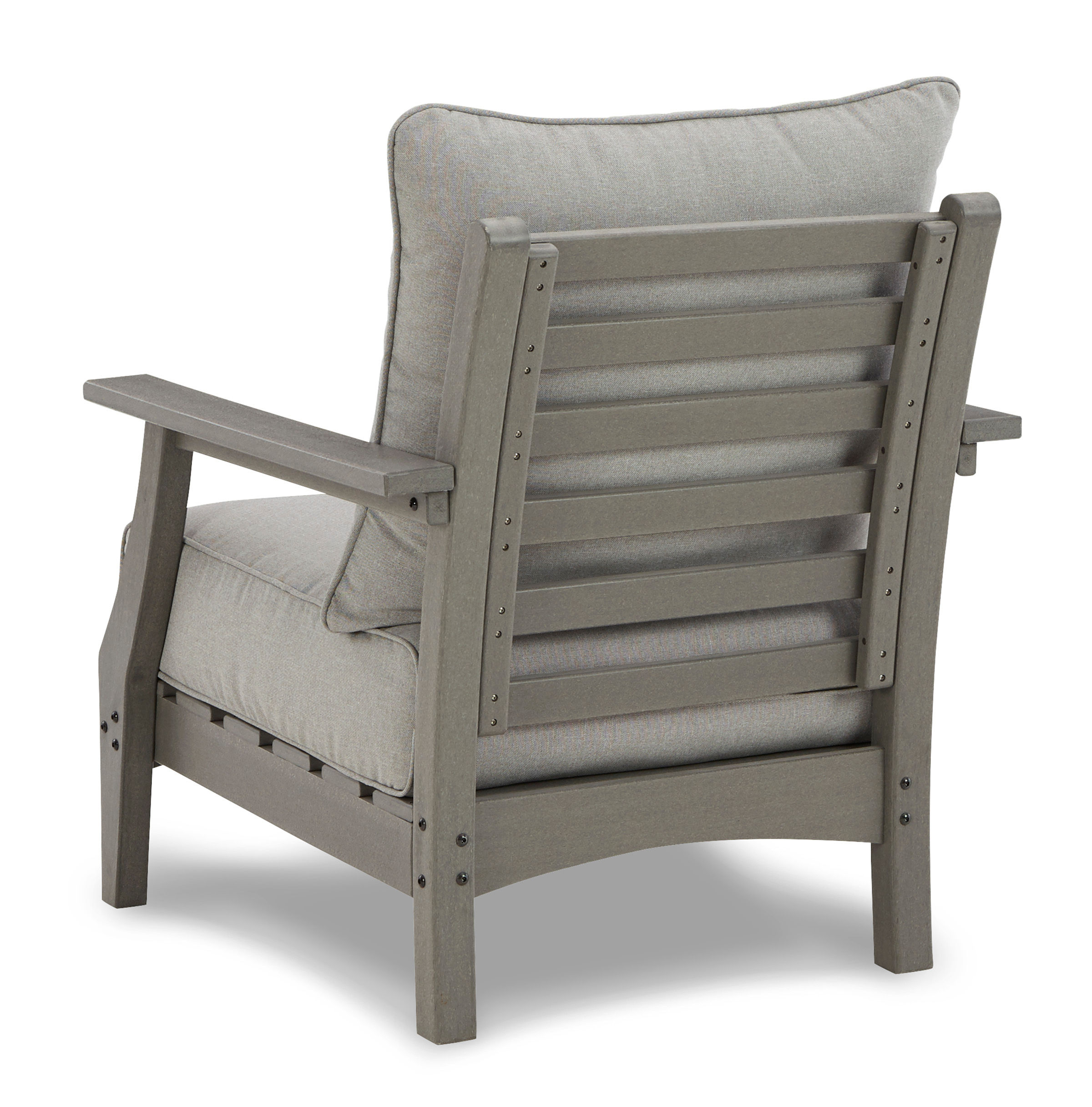 It’s the dawn of a new day for gray. Embrace the style trend with the Visola outdoor lounge chair. Crafted of HDPE material that combines the exceptional durability and weather resistance you need with the “wood look” you love, this comfortably cushioned outdoor chair takes outdoor living to a whole new level. Rest assured, the thick seat and back cushions are wrapped in our exclusive Nuvella® high-performance fabric that’s fade resistant, stain resistant and a breeze to clean.