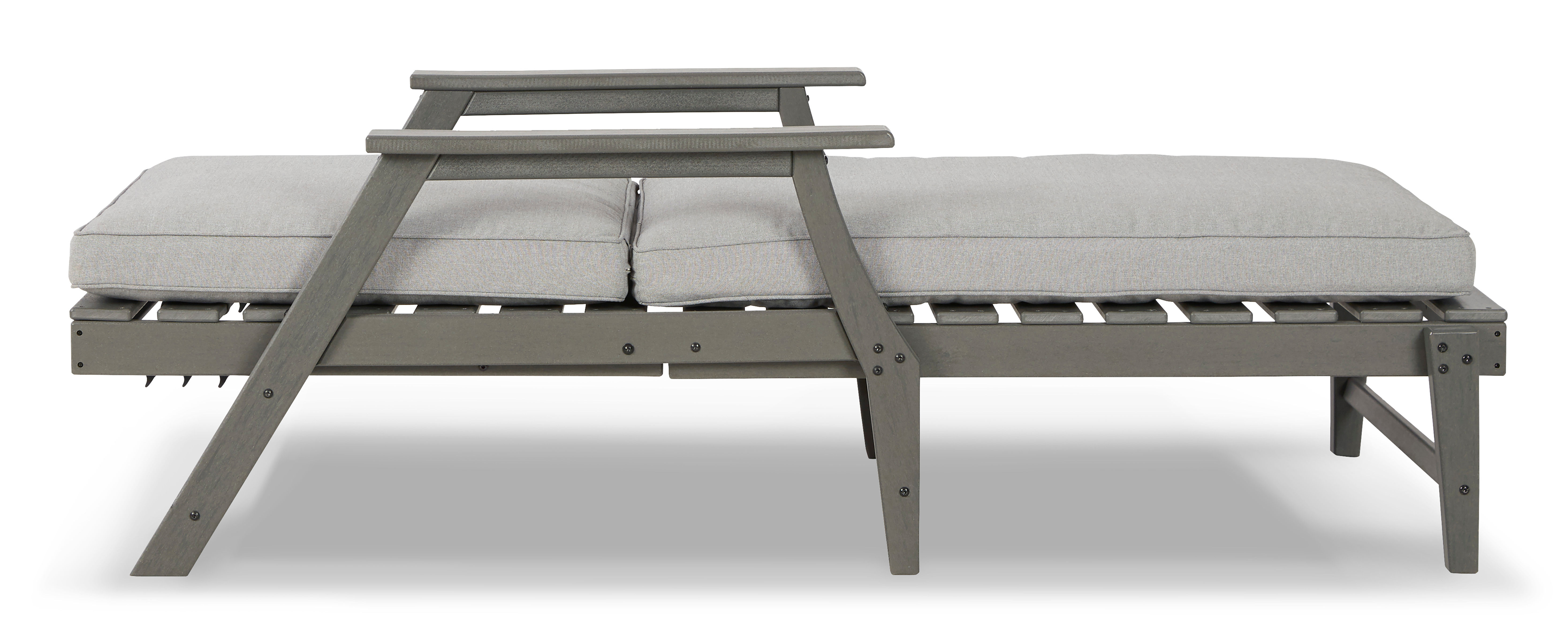 It’s the dawn of a new day for gray. Embrace the style trend with the Visola outdoor chaise lounge chair. Crafted of MEGA TUFF™ HDPE material, it combines the exceptional durability and weather resistance you need with the “wood look” you love. This comfortably cushioned chaise with an adjustable lay-flat backrest takes outdoor living to a whole new level. Rest assured, the thick seat and back cushions are wrapped in our exclusive Nuvella® high-performance fabric that’s fade-resistant, stain-resistant and a breeze to clean.