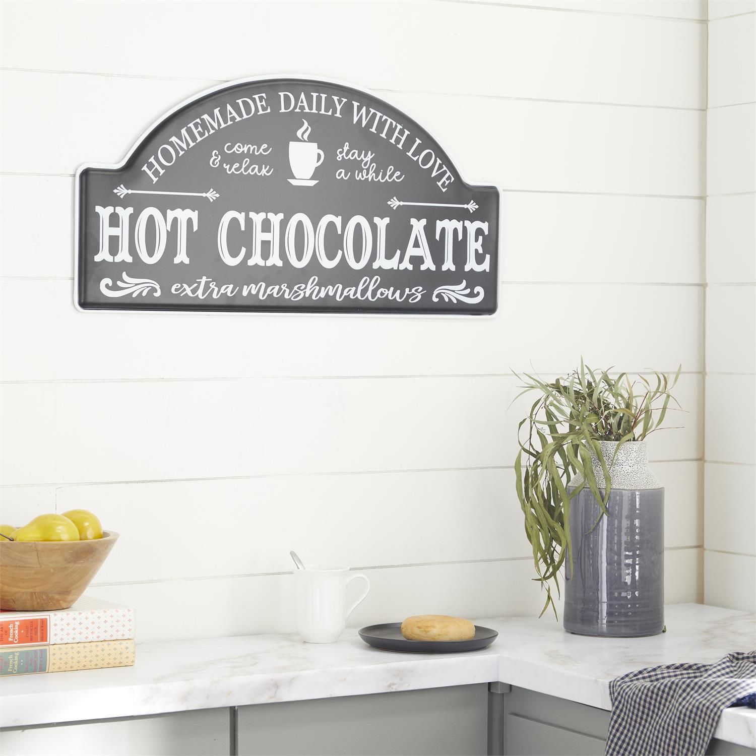 Experience farmhouse styled home decor with this Hot Chocolate Wall Decor, made with a chalkboard-inspired design.