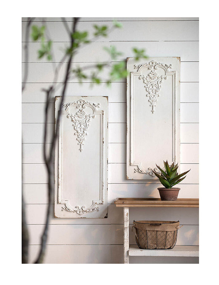 Add more visual interest to your home with the addition of these two wall panels, made with a distressed white finish. The intricately carved medallion motifs on these wall panels create a farmhouse style that can be blended into a wide variety of different interiors.