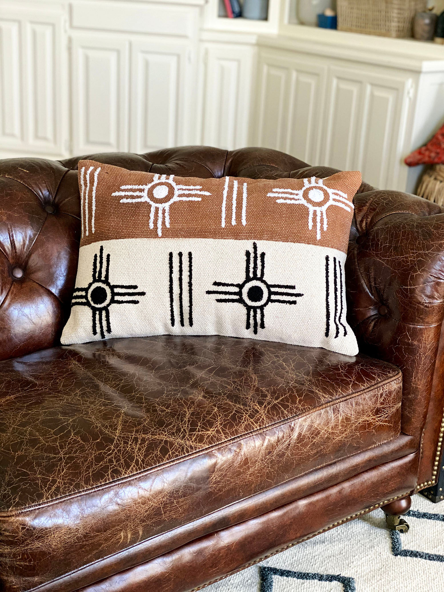 Show your Wichita city pride with this 100% cotton accent pillow. Embroidered with stitching to look like the Wichita flag this trendy pillow will fit many styles from modern farmhouse to contemporary to mid-century.