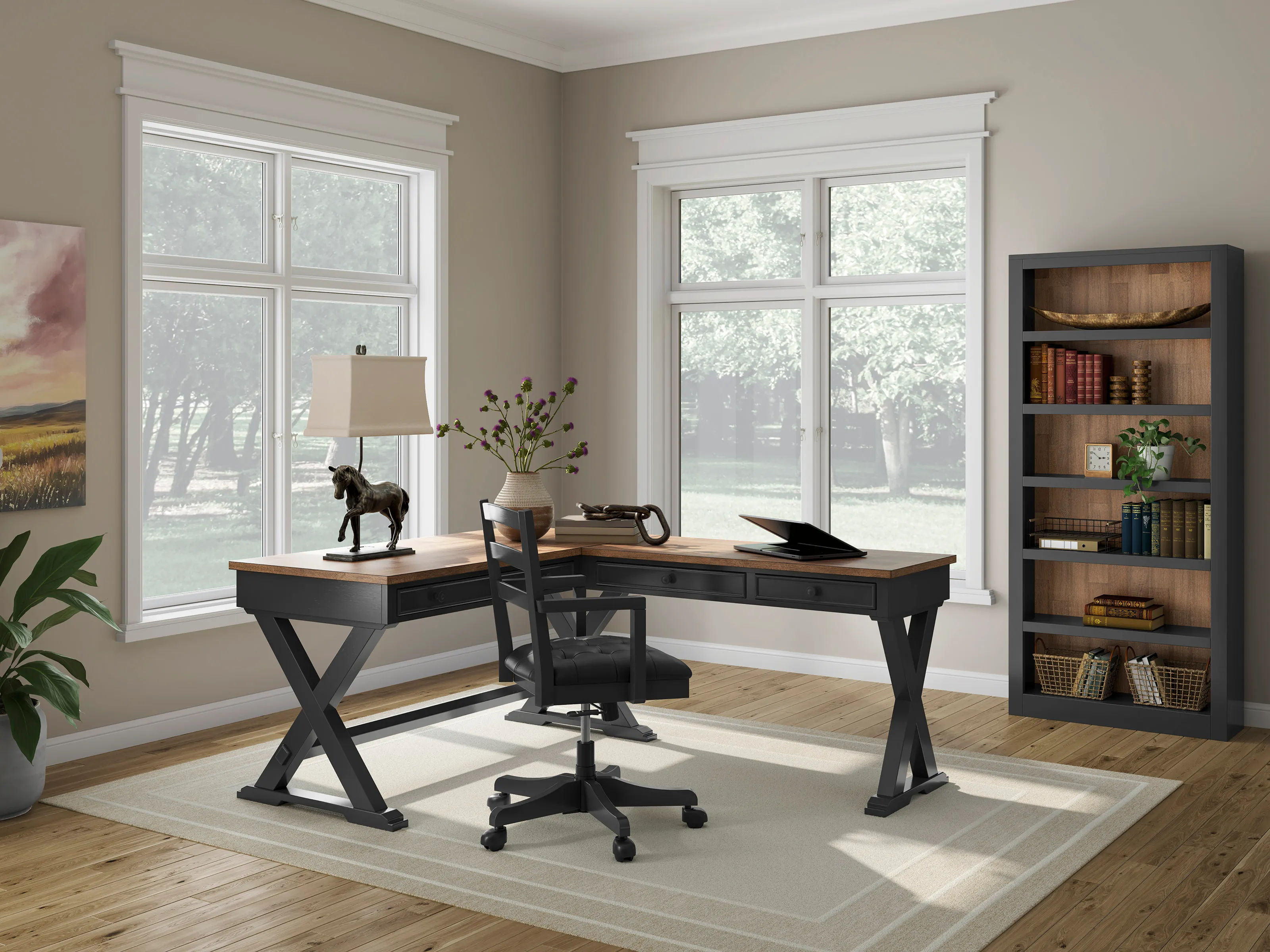 Add modern farmhouse style in your office with the Wildenauer Bookcase in a two-tone finish.