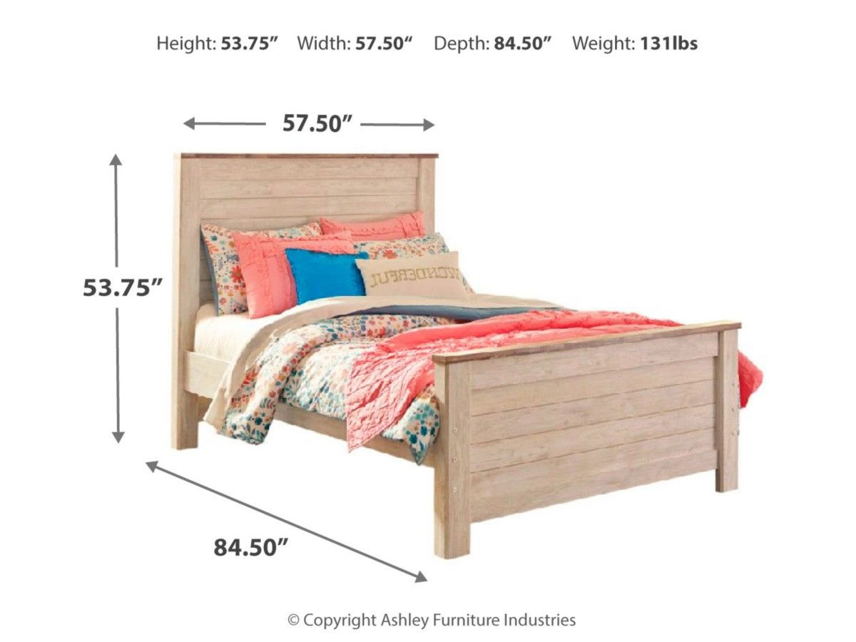 The Willowton full panel bed is the ultimate statement piece for a coastal cottage or shabby chic inspired retreat. Its whitewash finish is wonderfully easy on the eyes. Faux plank cap rails on the headboard and footboard infuse a driftwoody look that has our minds drifting away to beachy-keen escapes. Mattress and foundation/box spring available, sold separately.