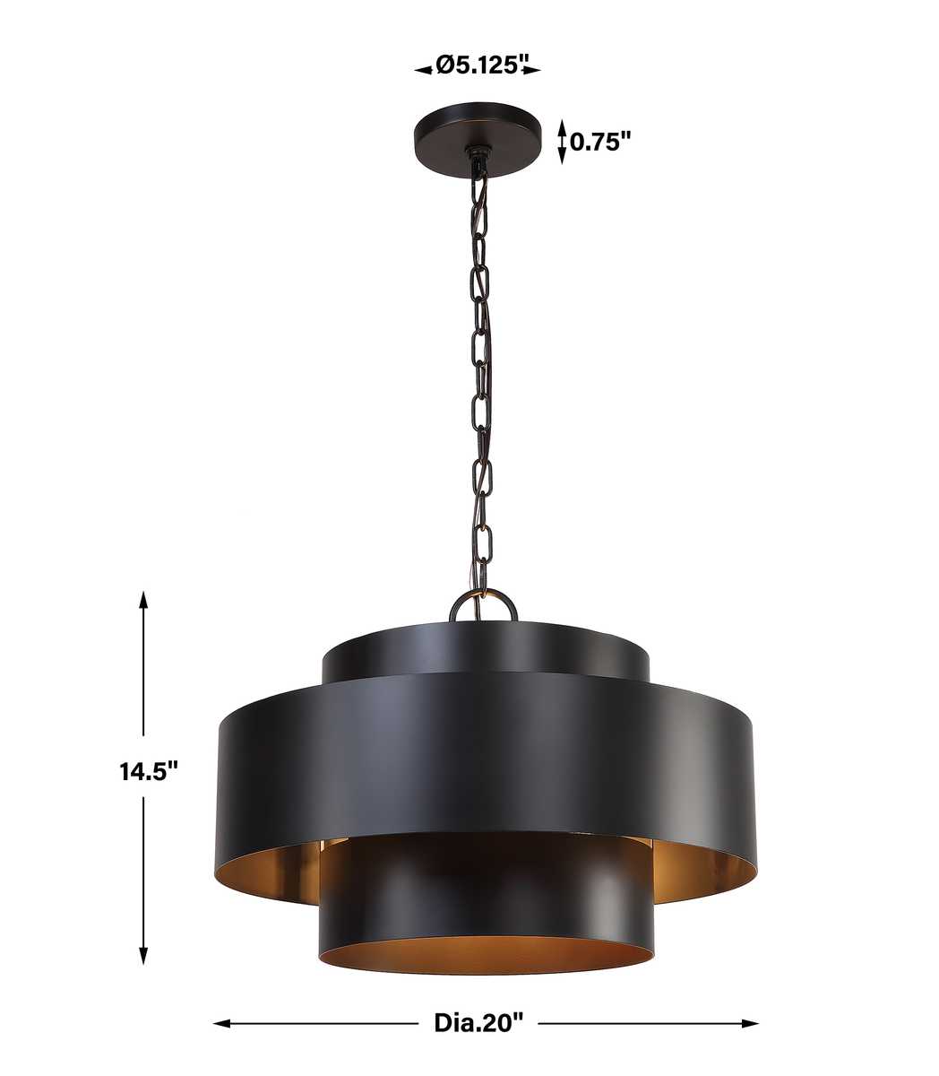 Rich Dark Bronze inter-stacked cylinders emphasize the clean classic feel of this 4 Lt pendant. 4-60 watt max candelabra sockets. Bulbs not included. Supplied with 15' wire, 7' chain for adjustable installation.